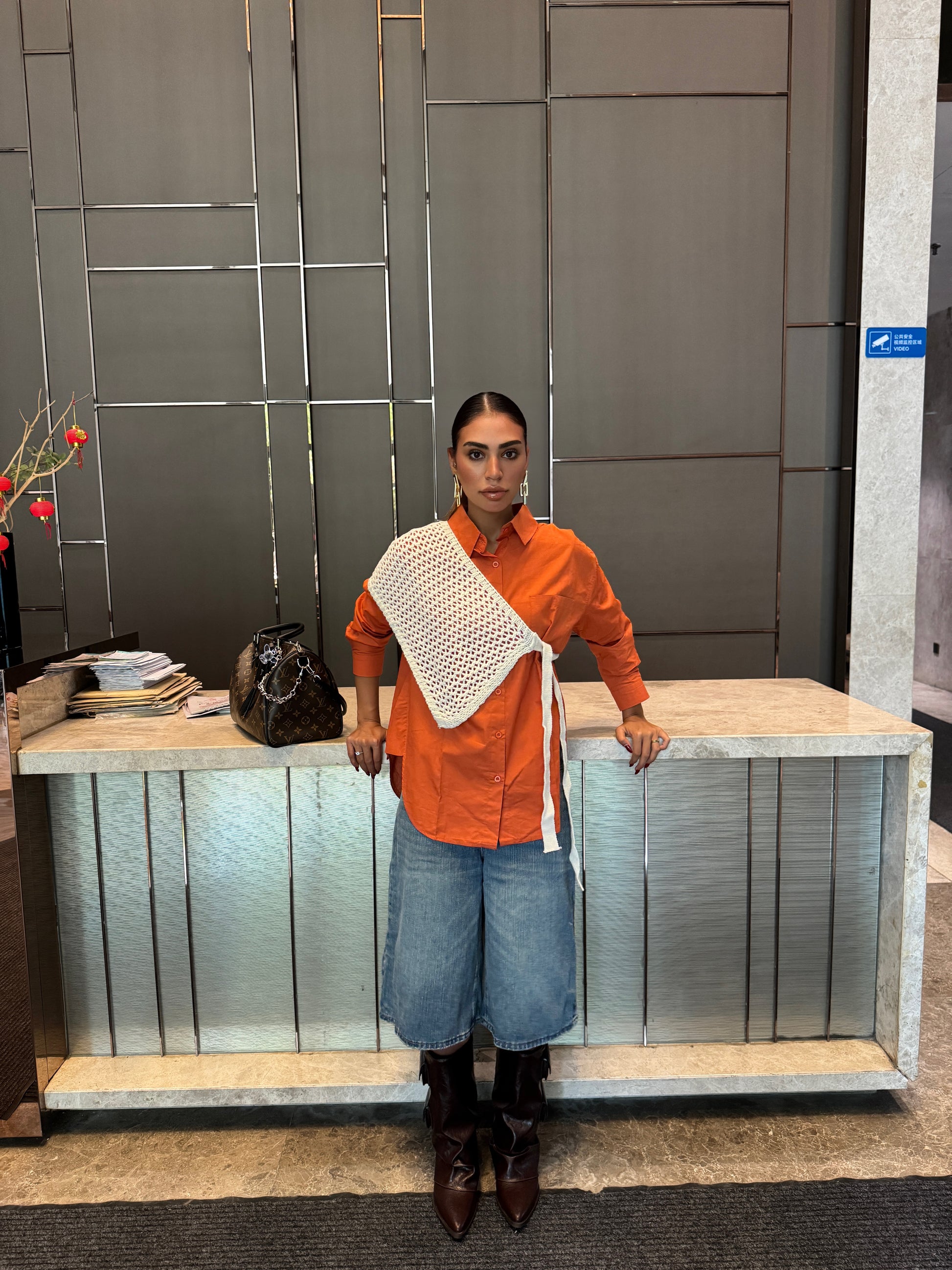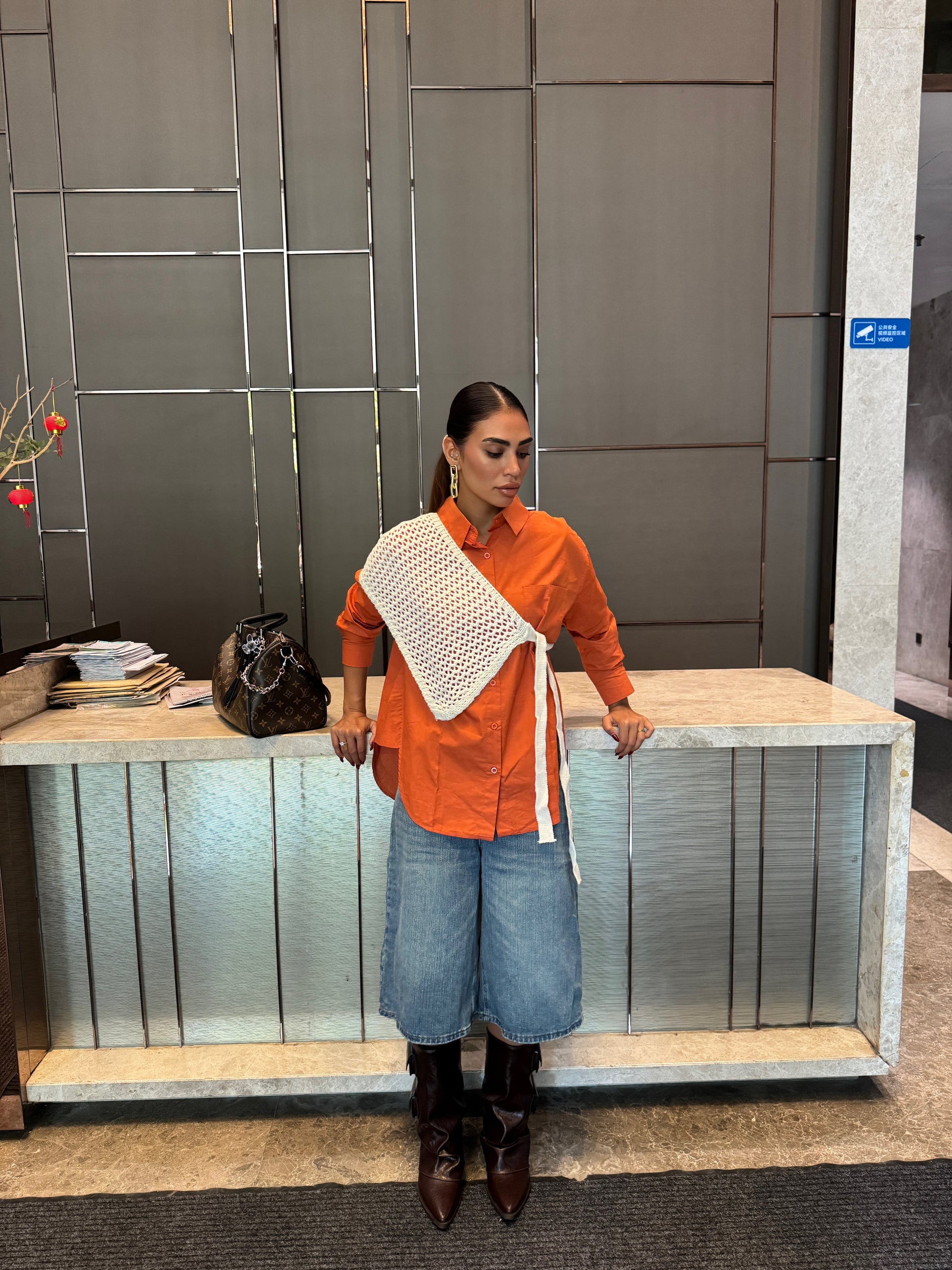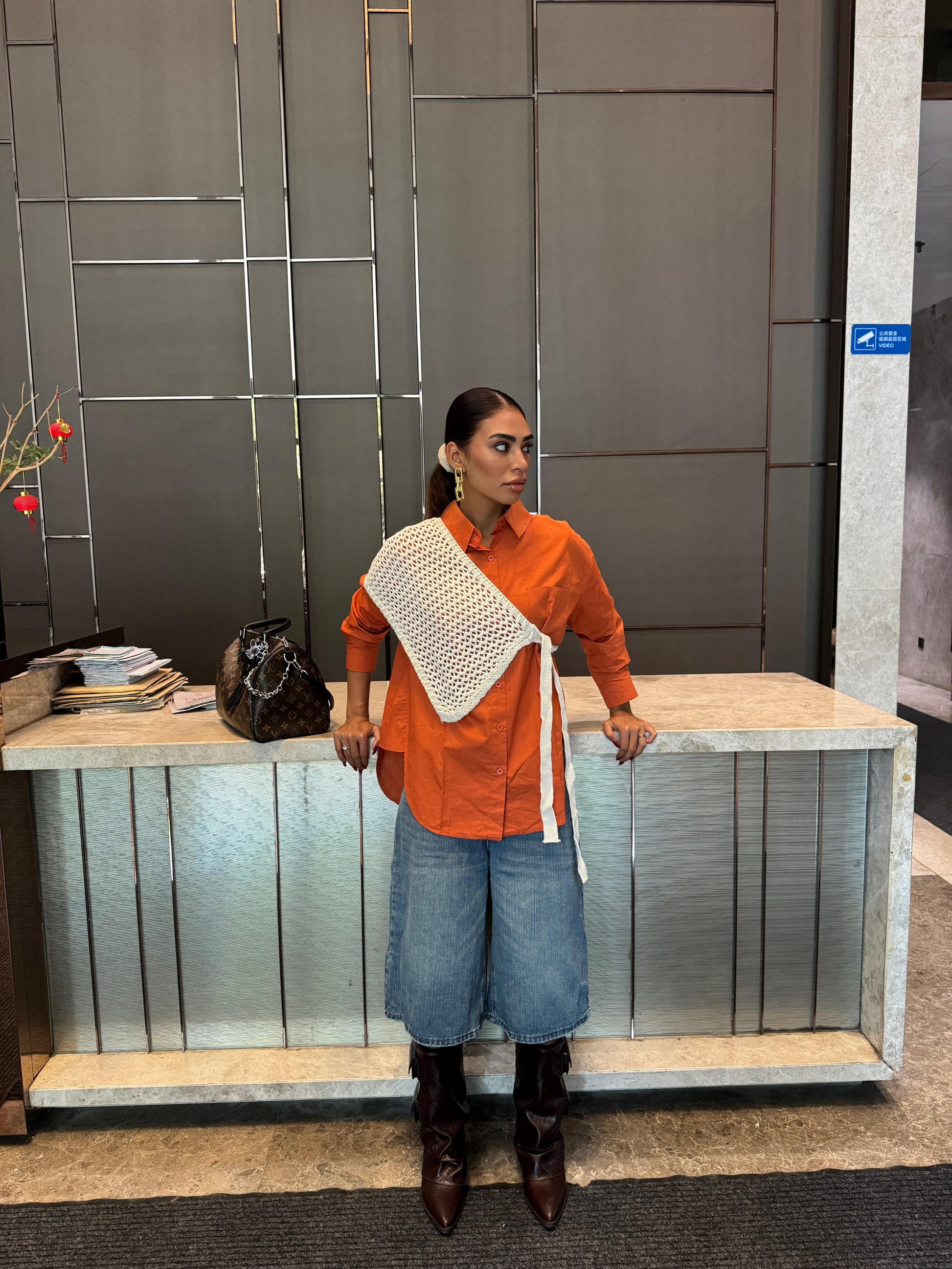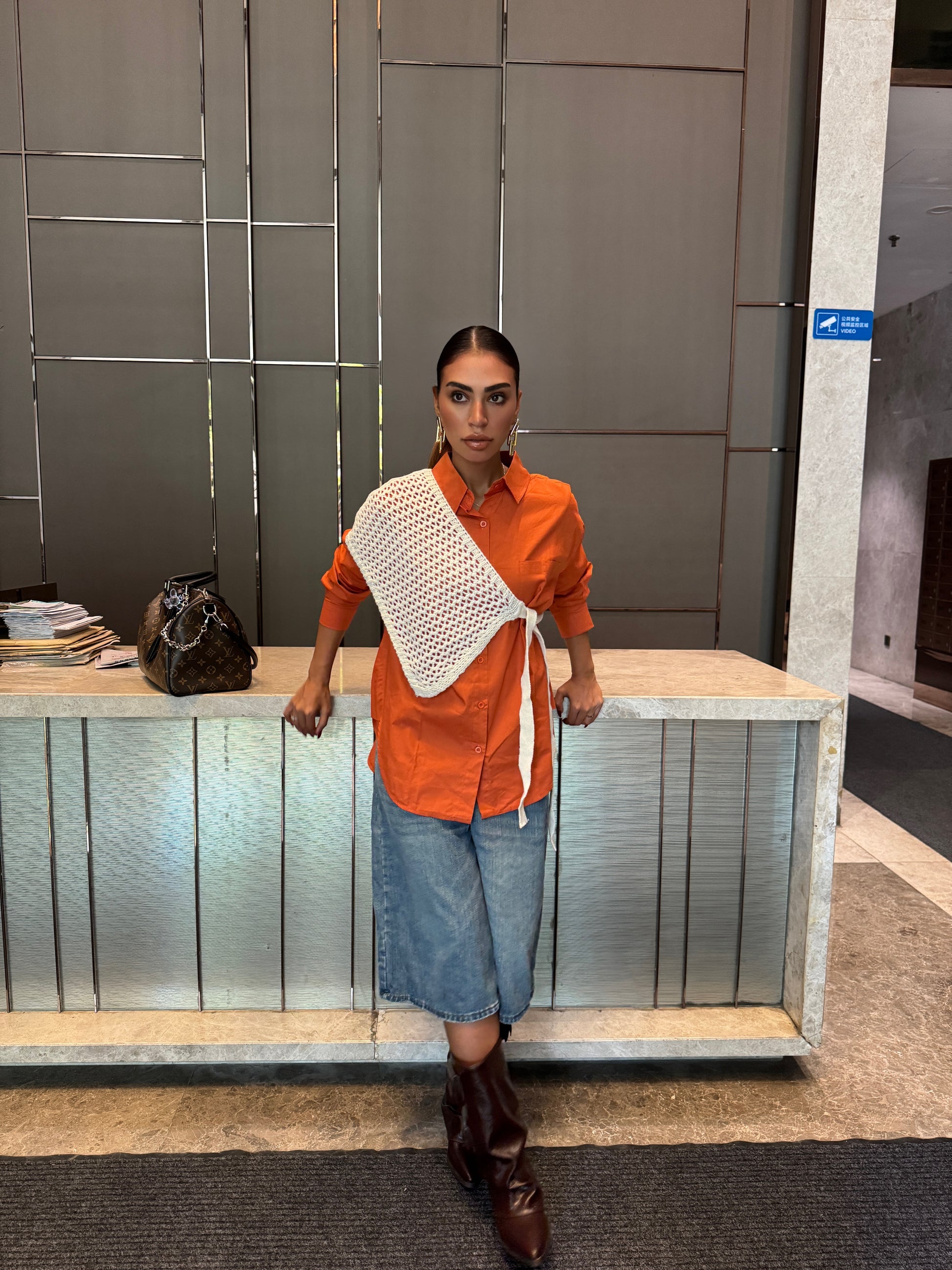 Poplin shirt with an oversized fit. It comes with crochet scarf.
