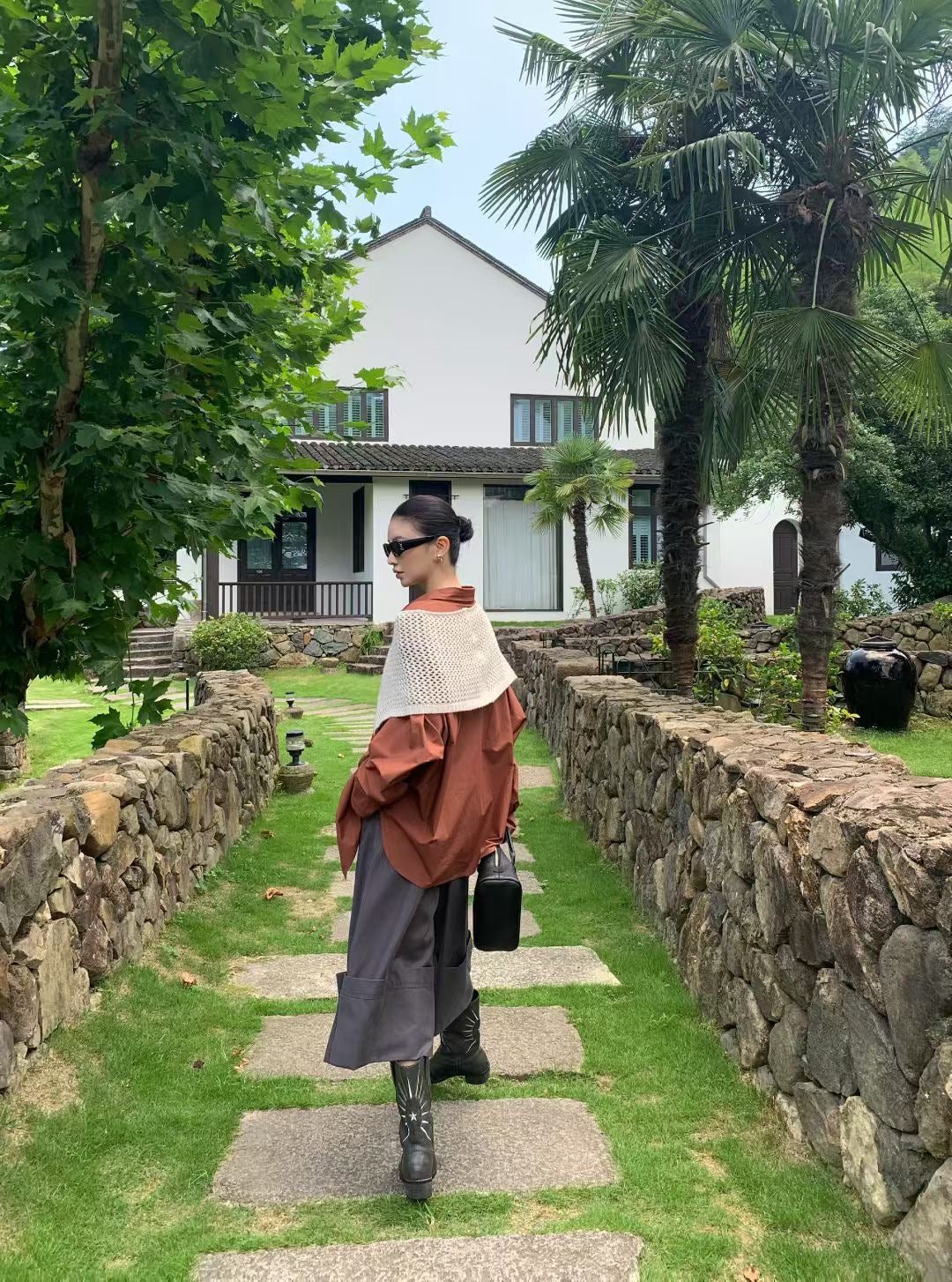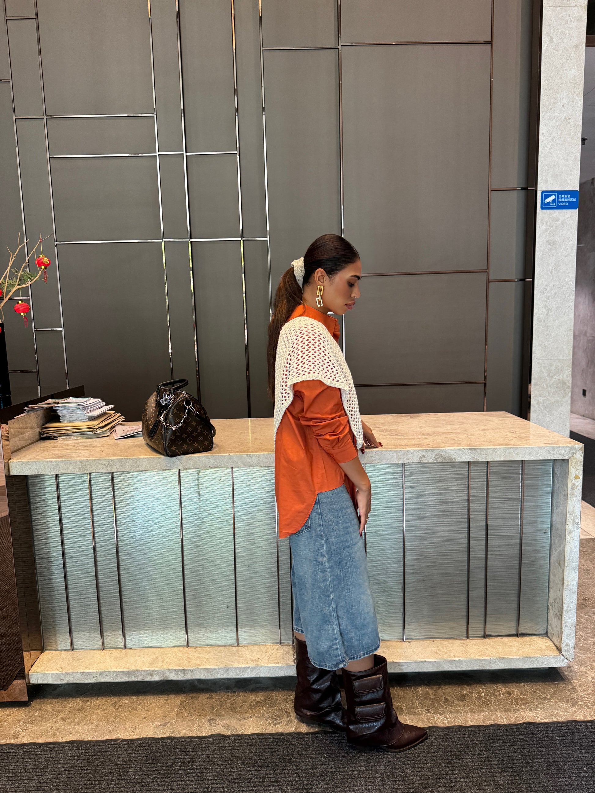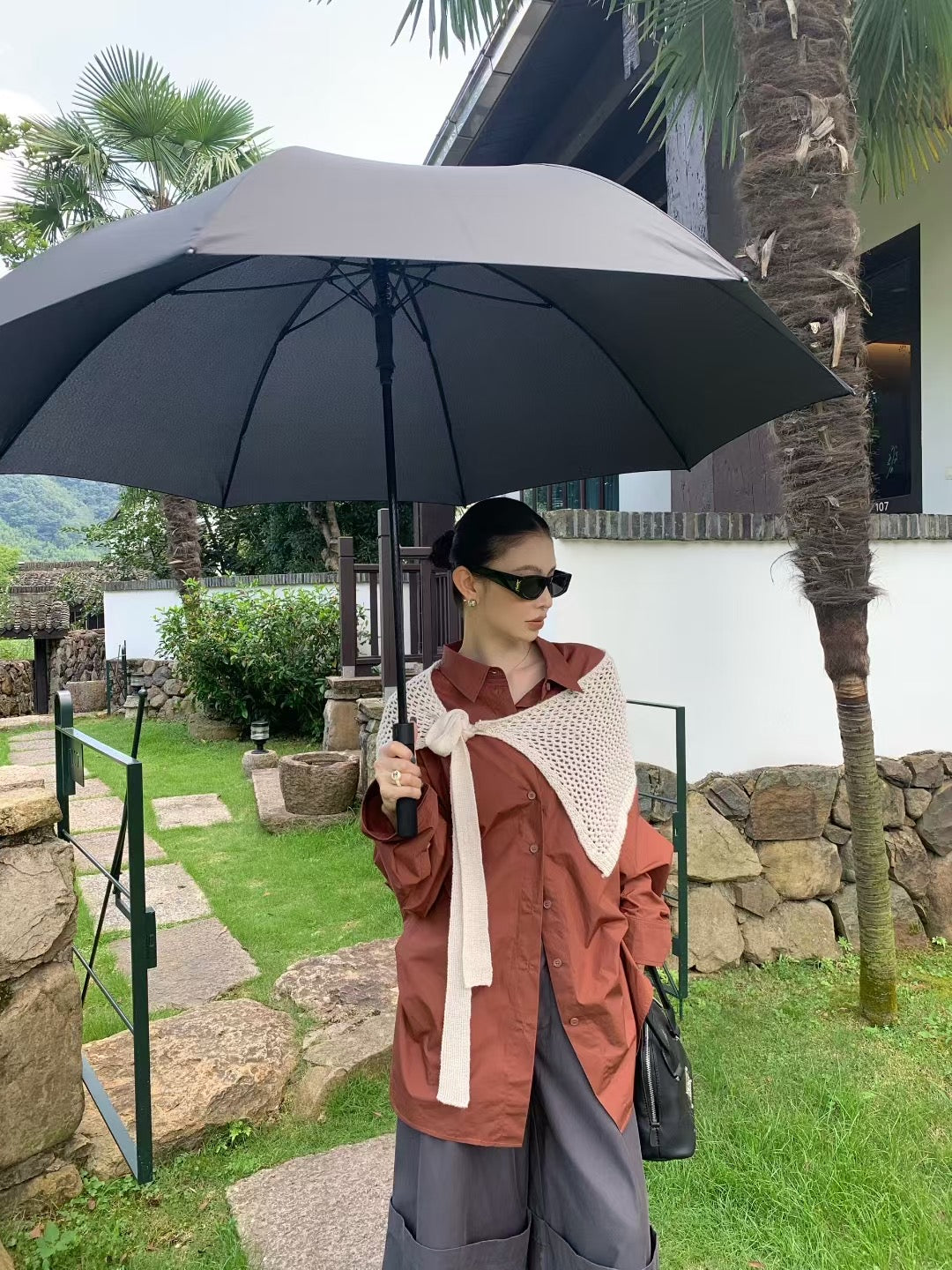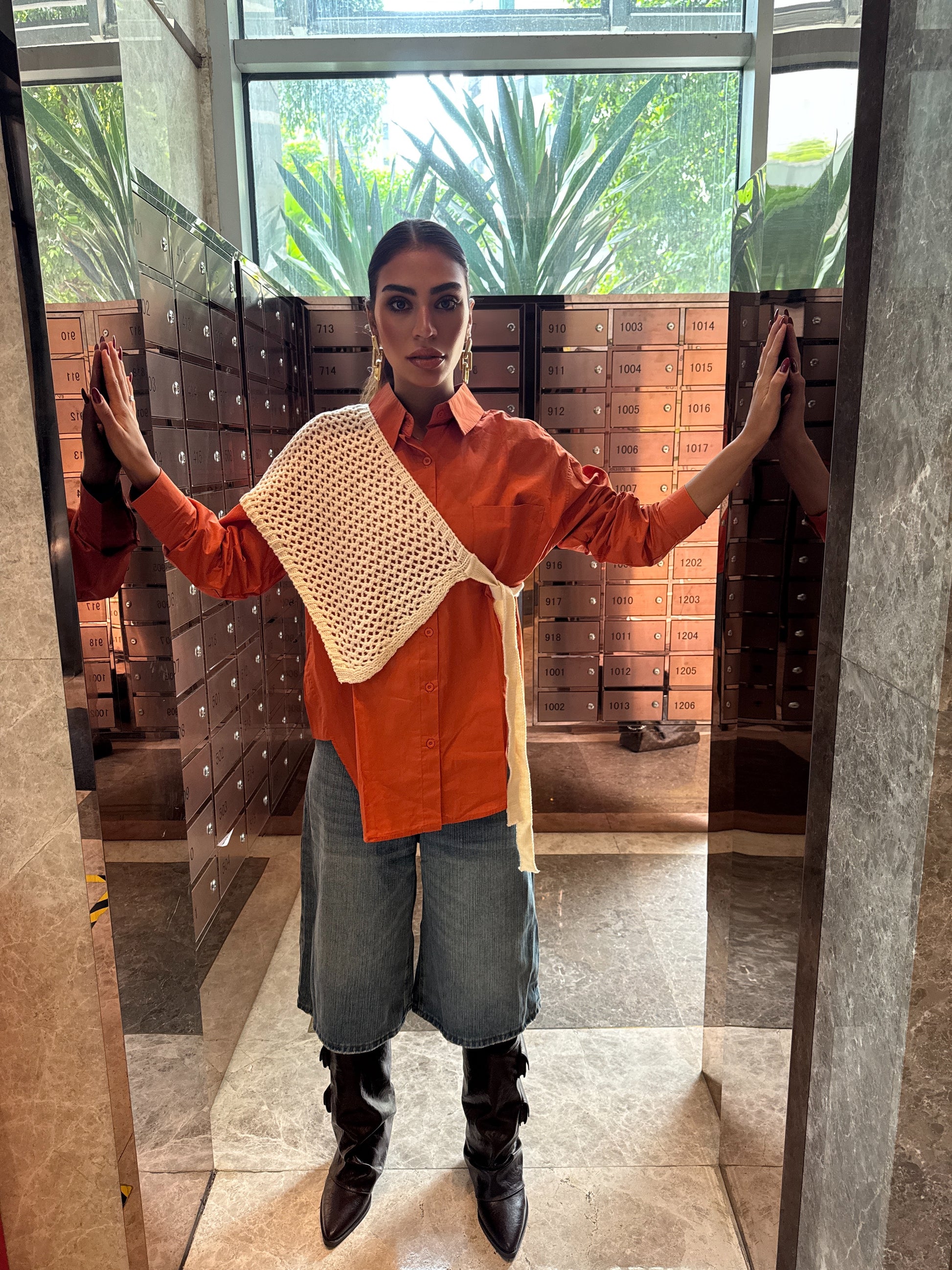 Poplin shirt with an oversized fit. It comes with crochet scarf.