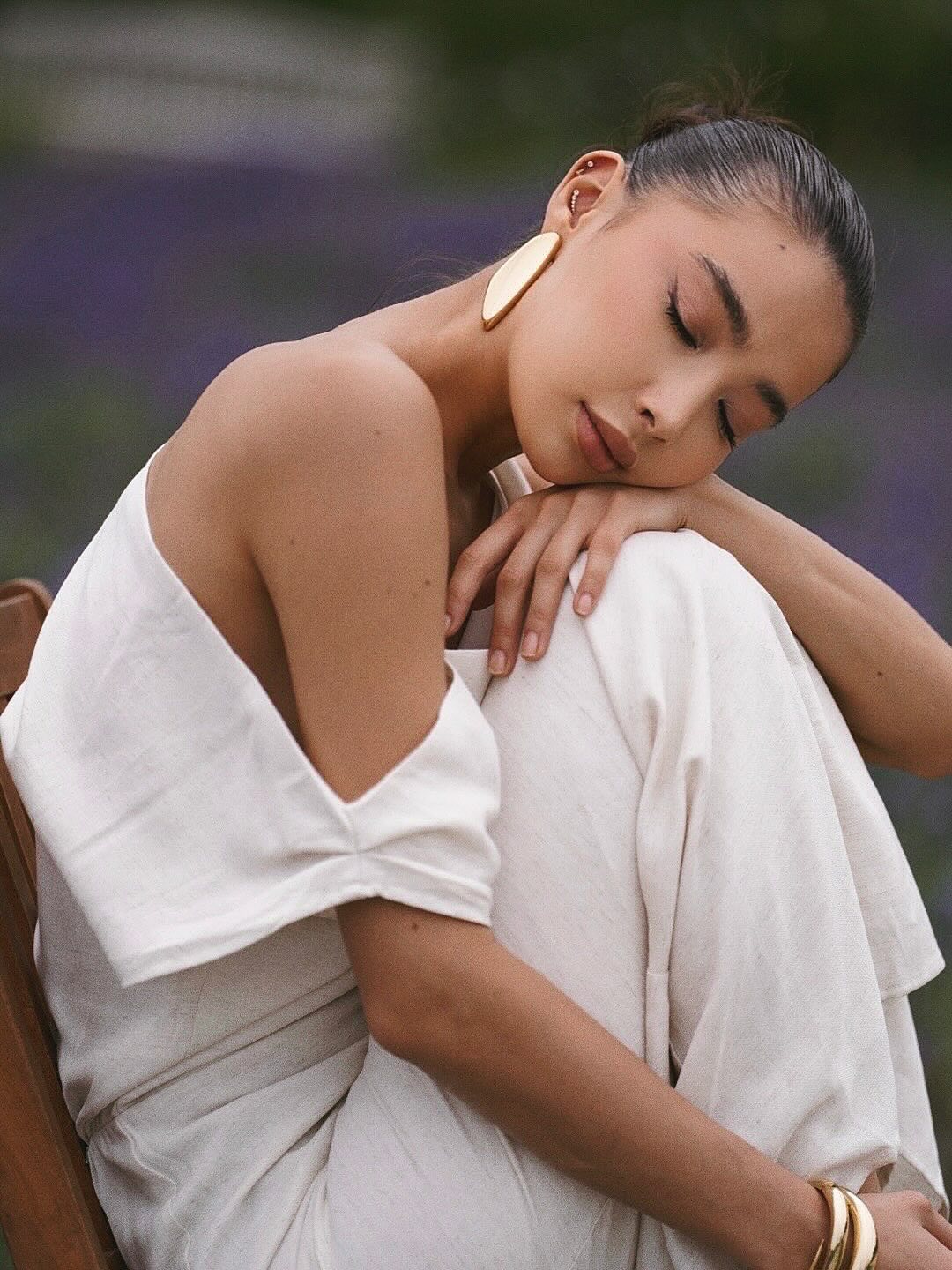 Effortlessly elegant, this halter maxi dress is crafted from lightweight, textured linen fabric adorned with delicate horizontal ruffles. The form-skimming silhouette flows into a subtle flounce at the hem, creating graceful movement with every step. Featuring a low shoulder with details and a flattering open-shoulder design, this dress is perfect for garden parties, coastal getaways, or warm evening dinners. Style it with strappy sandals and statement earrings for a chic, feminine look.