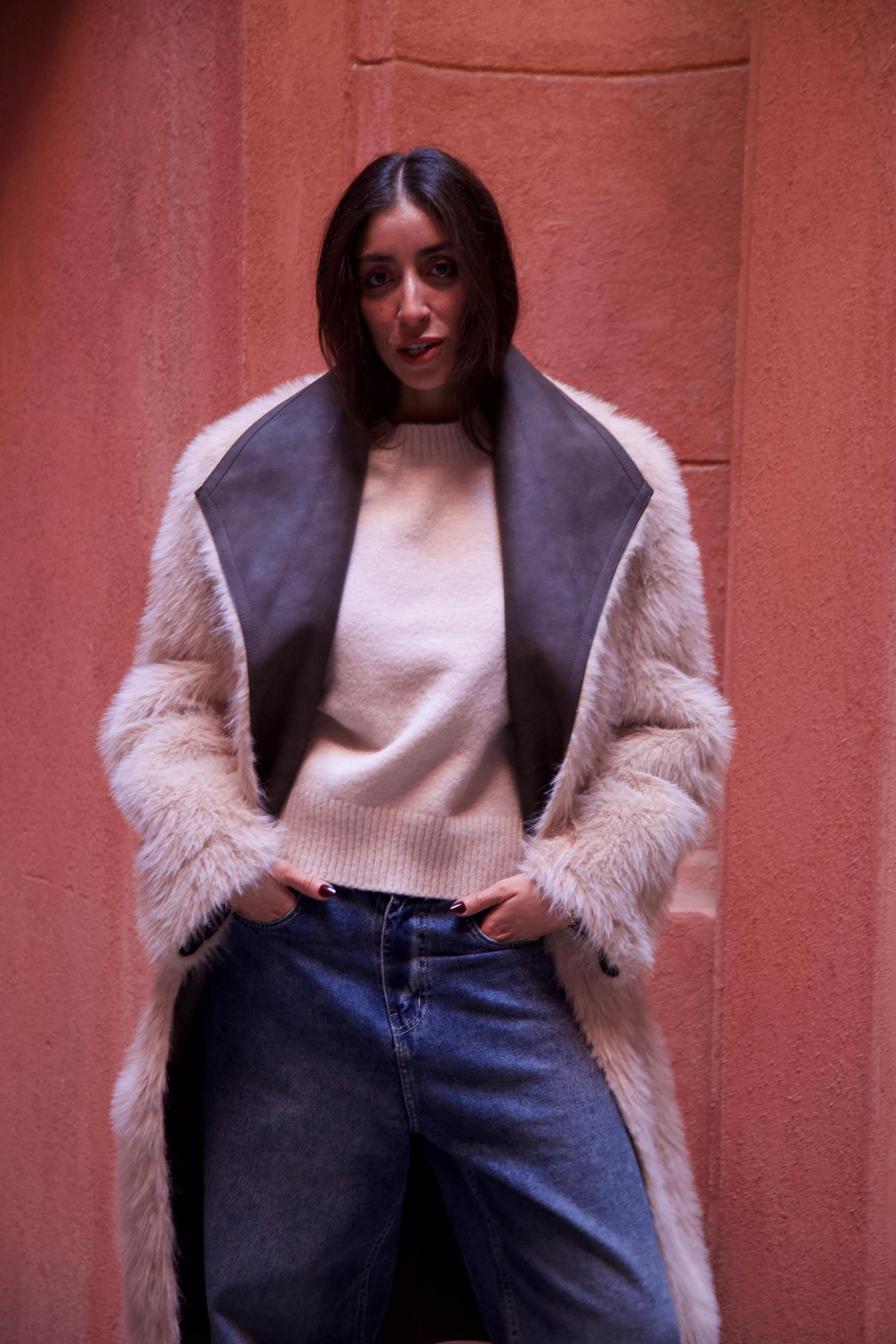 Designed for effortless sophistication, the coat balances warmth, structure, and versatility — perfect for elevated everyday wear or standout winter styling. Its tailored silhouette and premium materials make it a wardrobe investment that transcends seasons.