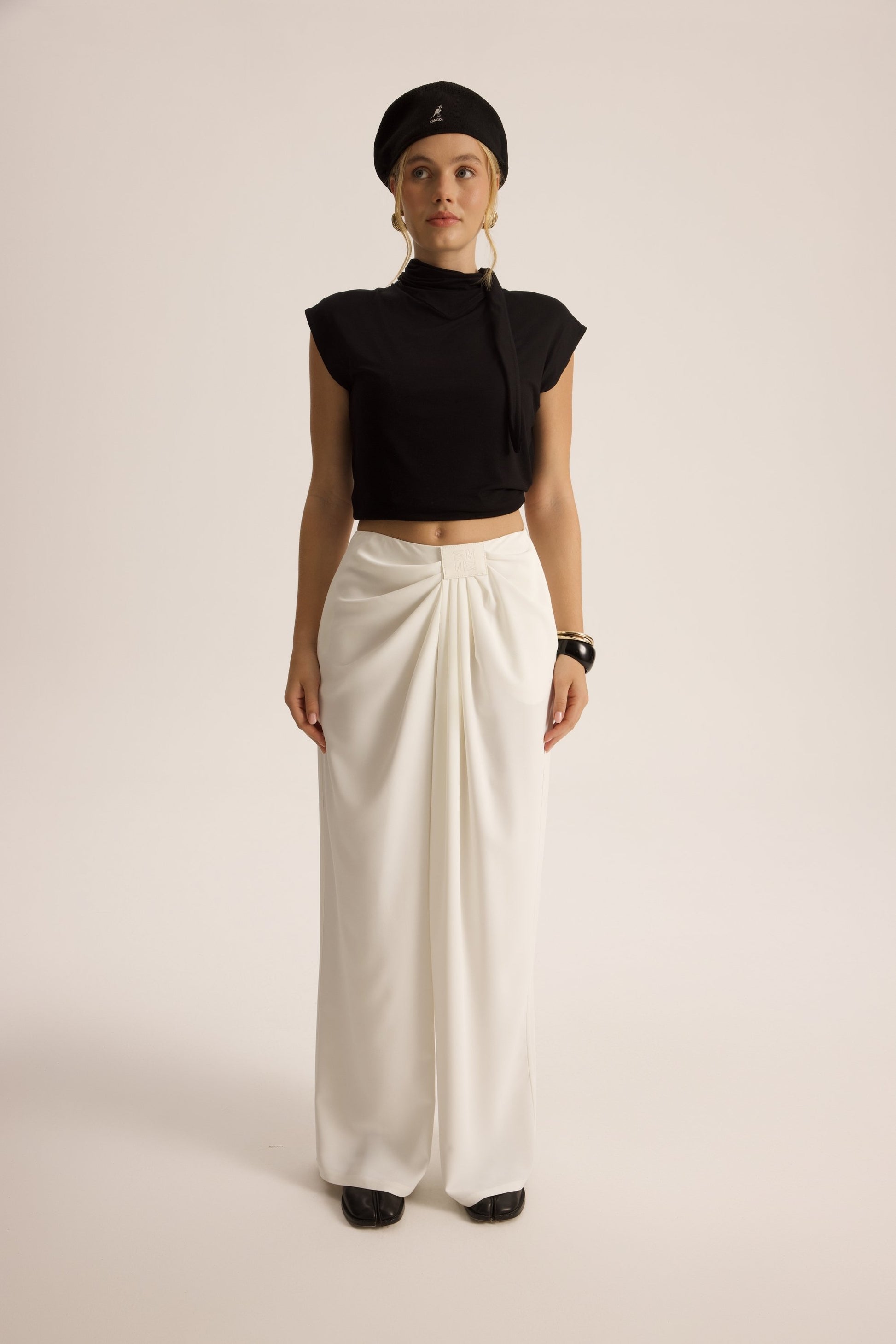 - High-waisted wide-leg silhouette