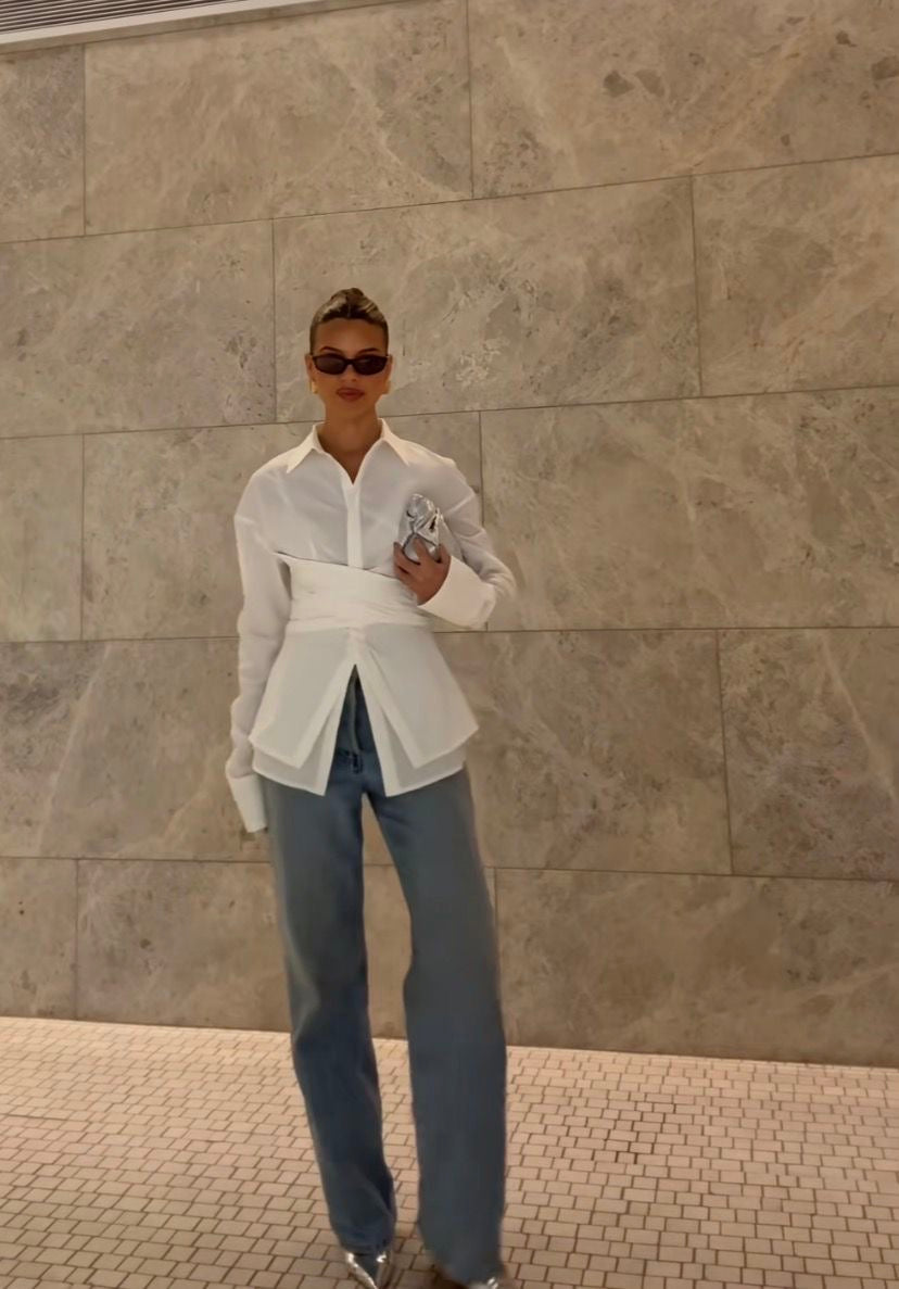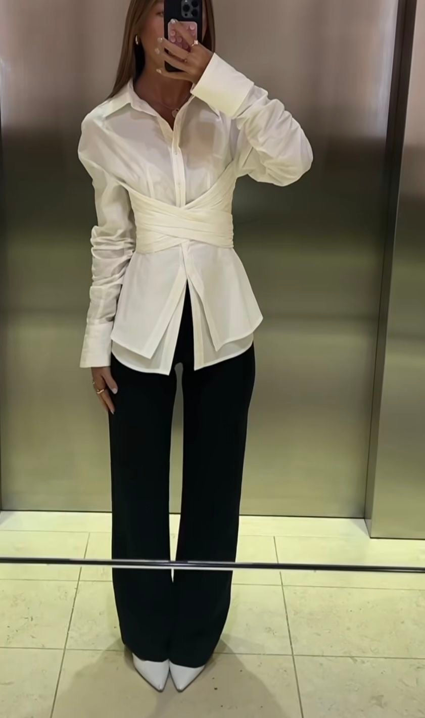 Effortless elegance meets modern tailoring. This crisp white shirt dress features a structured collar, long sleeves with button cuffs, and a defining wrap-style belt that cinches the waist for a flattering silhouette. The asymmetric hemline and premium poplin fabric create a refined, editorial look perfect for elevated everyday wear.